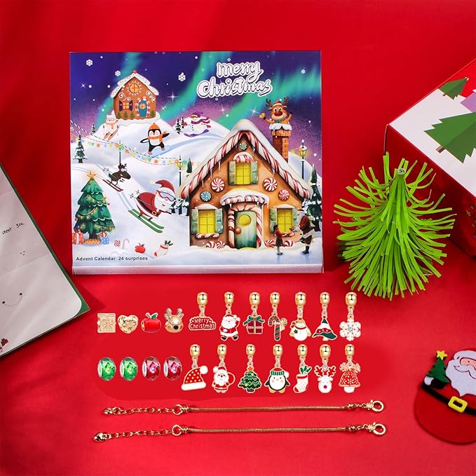 2024 Christmas Advent Countdown Calendar,Charm Bracelet DIY Making Kit 24 Days Surprise Gifts,Jewelry Making Supplies Beads for Teen Girls 4-12,Craft Toys Gifts Set with a Gift Box Gift