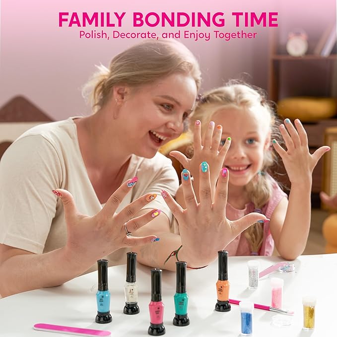 - Kid-Safe & Non-Toxic: Made with top safety standards in mind, this non-toxic kit offers worry-free fun. Perfect for ages 7 and up, each tool and polish is designed for safe, mess-free, creative play that kids can enjoy anytime.