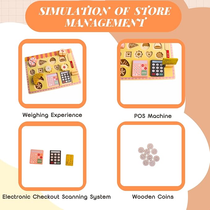 - Pretend Play Toy: Customers place orders, retrieve goods based on their requests, calculate the bill, make payments, and through this whole process, children get to experience the joy of managing and operating a shop