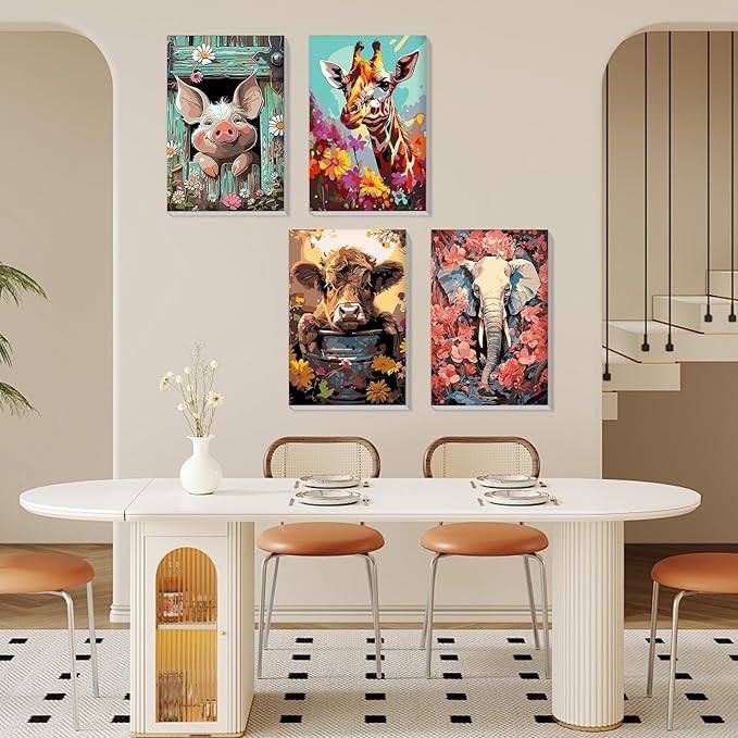 - What You Get: Adults paint by number comes with everything you need. 4 digital painting kits including pre-printed textured art canvas (unframed), 8 high-quality paintbrushes.