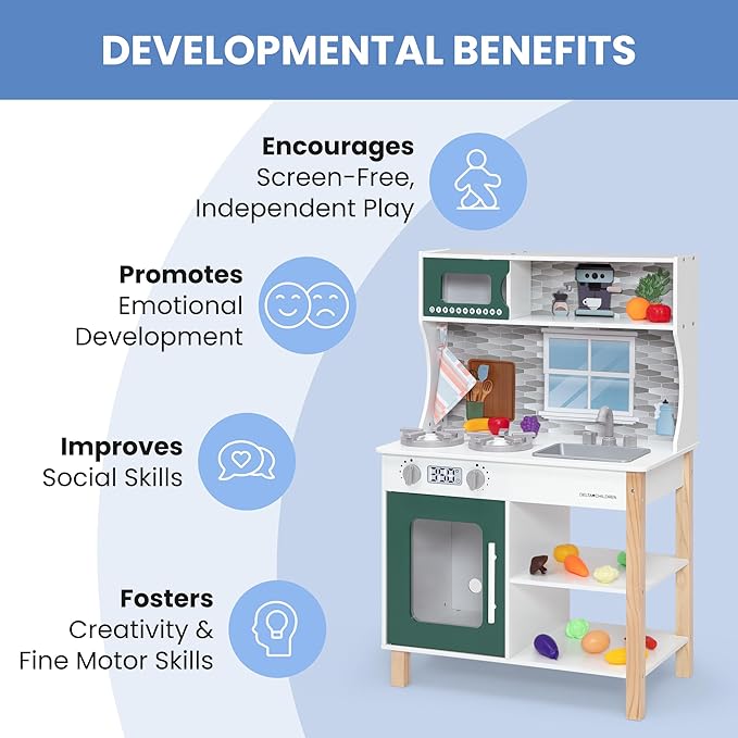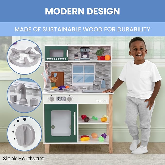 - MODERN DESIGN: Natural wood elements and sleek hardware make this modern kitchen a thoughtful option for the playroom | Crafted of premium and sustainable materials for a durable toy that can be passed down from kid to kid