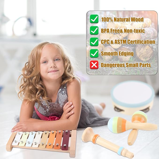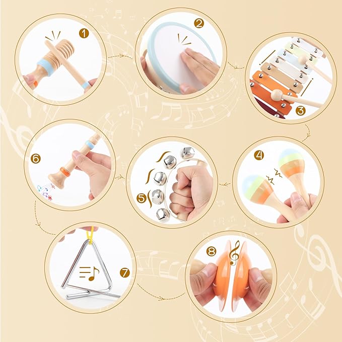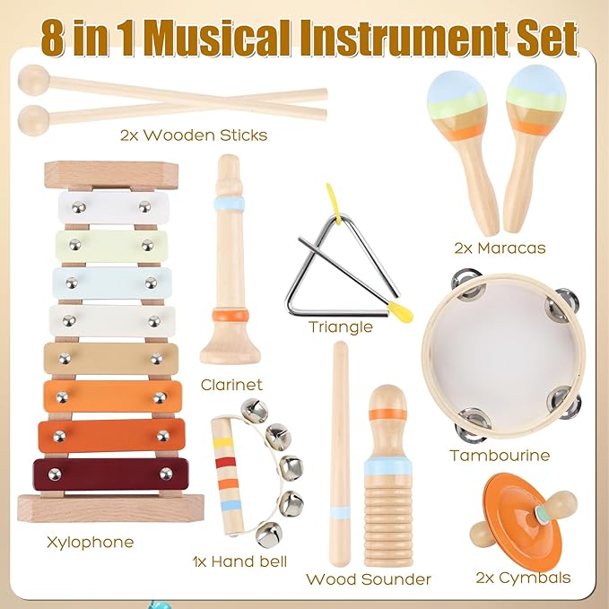 - 【Harmonious Aesthetic】 Designed with soft, neutral colors that blend seamlessly with any home decor, these wooden toys not only entertain but also create a calming environment for play. Each piece is meticulously crafted for durability, allowing your little ones to enjoy their musical adventures for years to come.