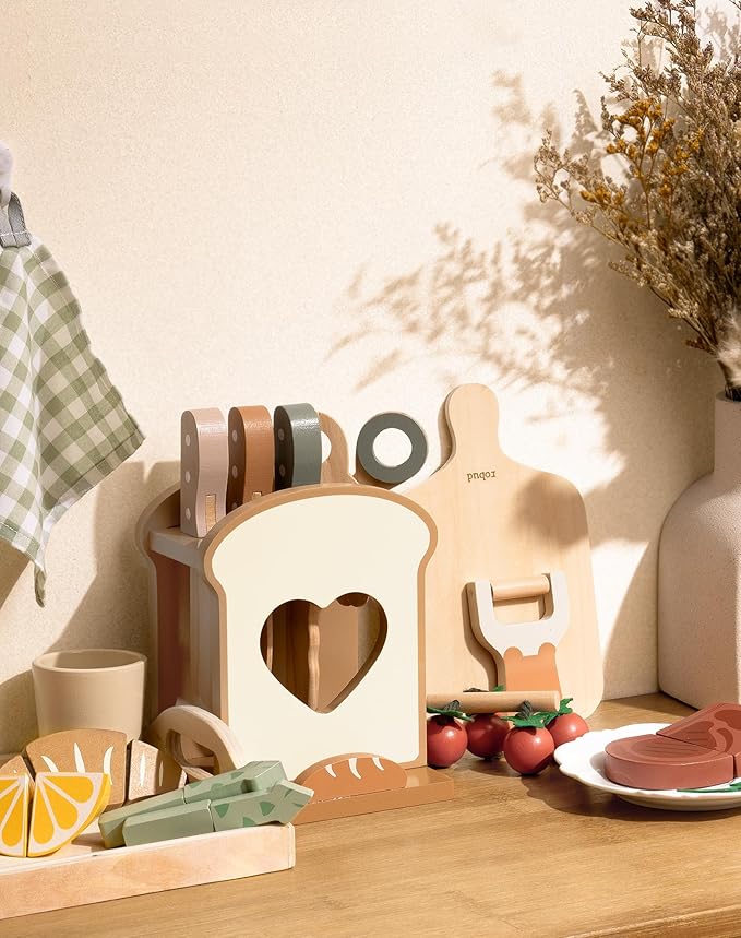 ROBUD 16pcs Kids Play Kitchen Knife Set - Wooden Cooking Playset, Montessori-Inspired Pretend Kitchen Toys for Toddlers, Role Play Gift for Boys and Girls