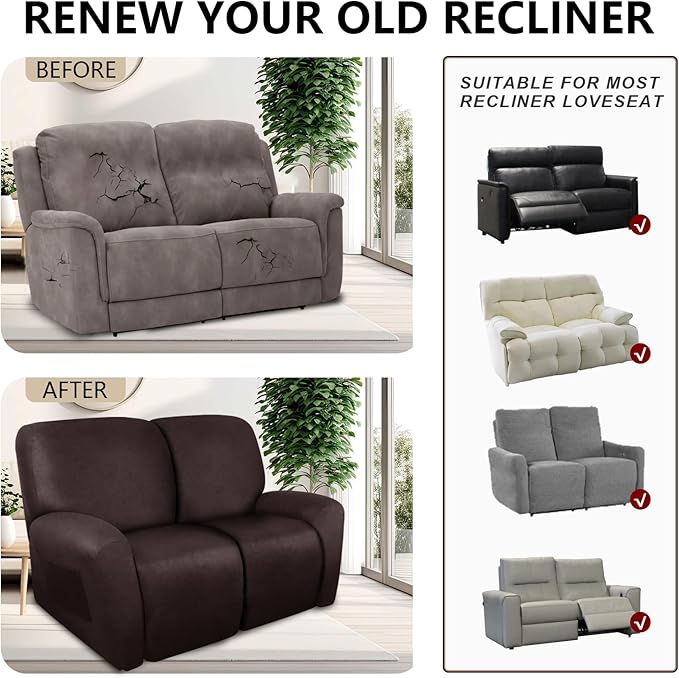 - MULTI-FUNCTION: Our reclining loveseat cover serves as both a furniture protector and a decorative piece. Protect your recliner couch from daily dirt, sweat, kids' play, and pet scratches. Also, use it as a DIY home decoration to enhance the look of your living room