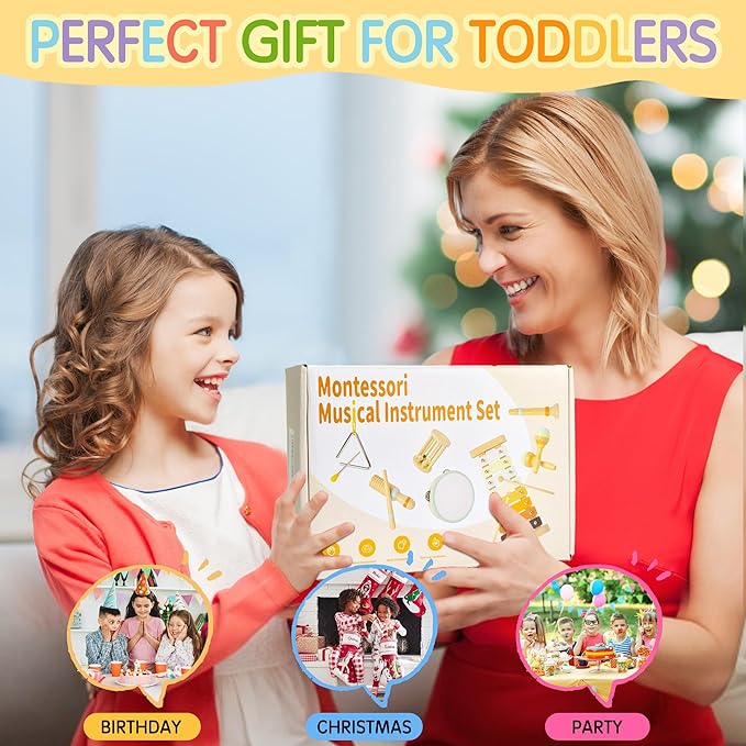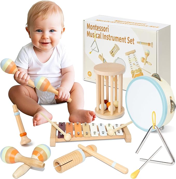 Baby Musical Instruments, Montessori Wooden Toys for Toddlers, Premium Wooden Musical Instrument Set for Kids Preschool Educational, Fun Musical Instruments for Children