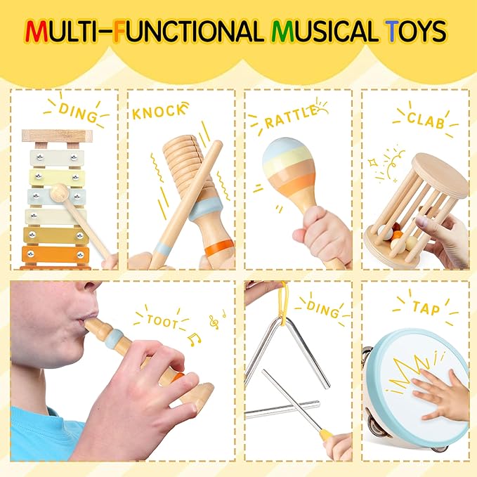 - Harmonious Aesthetic: Designed with soft, neutral colors that blend seamlessly with any home decor, these wooden toys not only entertain but also create a calming environment for play. Each piece is meticulously crafted for durability, allowing your little ones to enjoy their musical adventures for years to come.