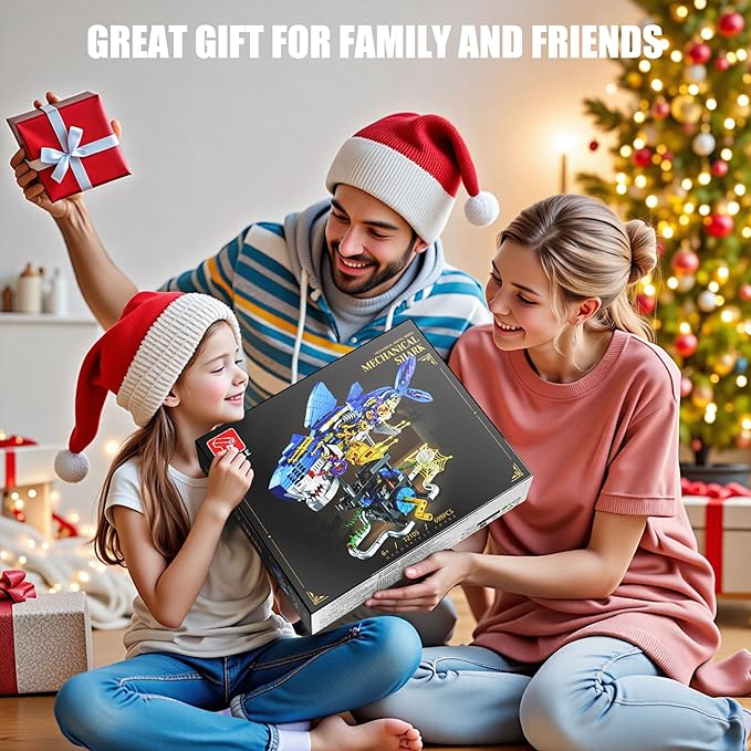 - 【Home&Office Decor】The semi-mechanical design gives this Building set a futuristic look, while the mouth and fins can be adjusted according to your preferences. The sleek display stand allows it to be placed anywhere you like, such as on a bookshelf or a desk