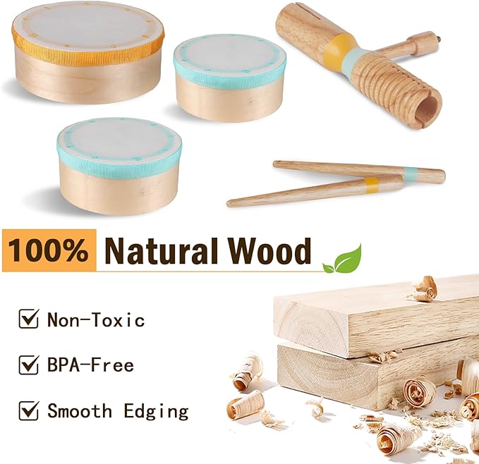 - Safe Montessori Musical Toy for Toddlers 1-3: Our baby drum set is the best baby wooden toys for kids 3+, being 100% BPA-free, safe, non-toxic, easy to clean.All of baby items have passed the most stringent CPC/ASTM, Educational toys for 1-2-3-4-5 year old boys and girls.