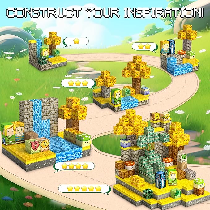 - 【Free Matching】: Magnetic blocks have greater freedom. You can build according to the scenes in the album, or according to your own ideas and creativity, giving you more lasting fun; at the same time, as long as you have enough magnet blocks, you can expand infinitely, show your creativity and spatial imagination, and build larger scenes.
