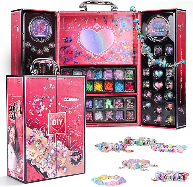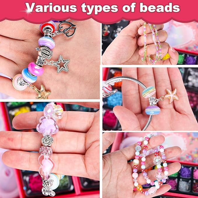 Woiworco Jewelry Making Kits Bracelet Making Kit with Jewelry Box, Valentine's Day Gifts Birthday Gifts for Kids Girls 4-6 8-12, Art and Craft Set