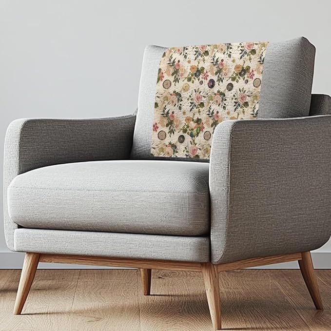 Retro Rose Head Protector for Sofa Fabric Recliner Headrest Cover Breathable 1/2/3 Seater Sofa Headrest Slipcovers for Home Couch Loveseats Decoration Set of 2