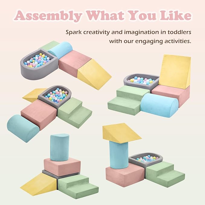 • 【Safe&Fun to Play】: Our climbing blocks with ball pit( hold up to 100 pcs balls, balls not Included) )are made from non-toxic and odorless fabric. Designed with hidden zippers to prevent scratching on children's soft skin, these climbing blocks provide a reassuring&safe environment for play. With a focus on safety, our foam blocks are built without hard structures or sharp edges to protect children from bumps and injuries.Your child can safely play, toddle, and roll on this climbing toy that offers a soft and supportive surface, providing peace of mind for parents