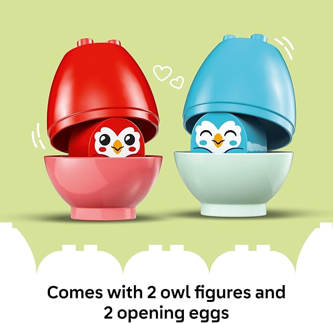 - SENSORY TOY FOR KIDS – This building toy comes with 2 owl figures, 2 tactile opening eggs and a tree house with a hinged window