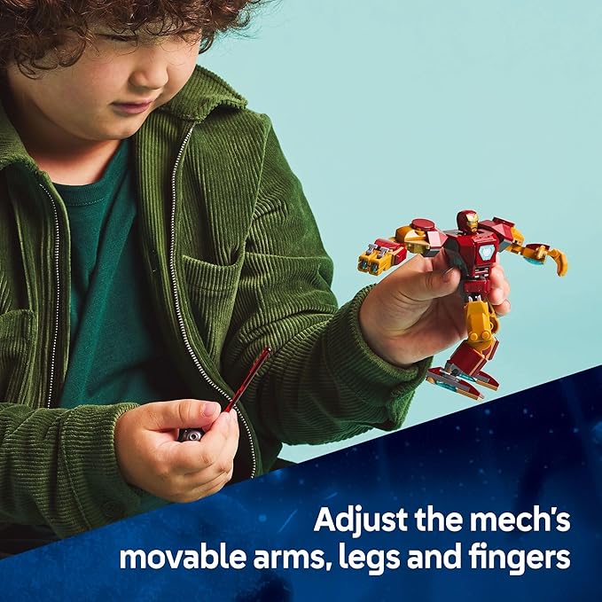 • POSABLE MECH TOY – The mech is a posable figure with movable arms, legs, fingers and the torso, which opens to reveal a cockpit that can hold the Iron Man minifigure