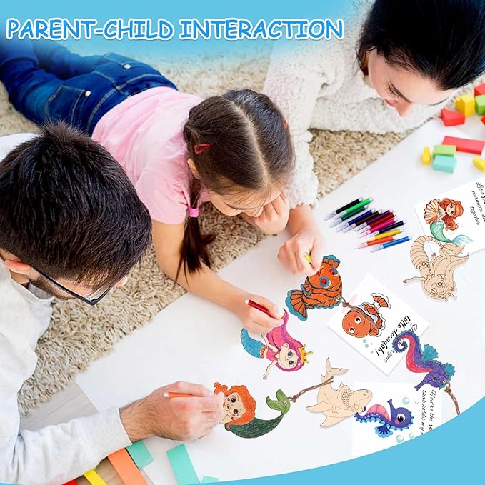 - 2.Parent-Child Bonding Experience:Create beautiful mermaid wood slice art with your family, strengthening your bond. This fun activity enhances yourself fine motor skills and fosters teamwork, making it ideal for little mermaid party favors and mermaid birthday party favors