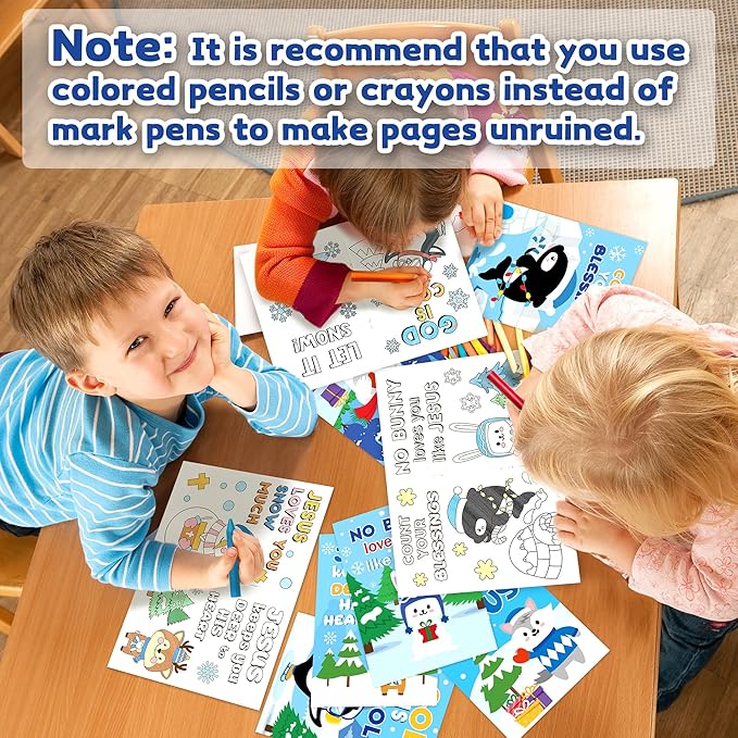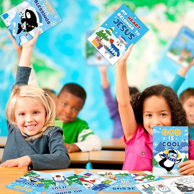 24Pcs Polar Animals Religious Coloring Books - Winter Christian DIY Color-in Pages Booklet Bulk Drawing Activity Party Supplies for Sunday School Classroom Rewards Artwork Gift for Kids