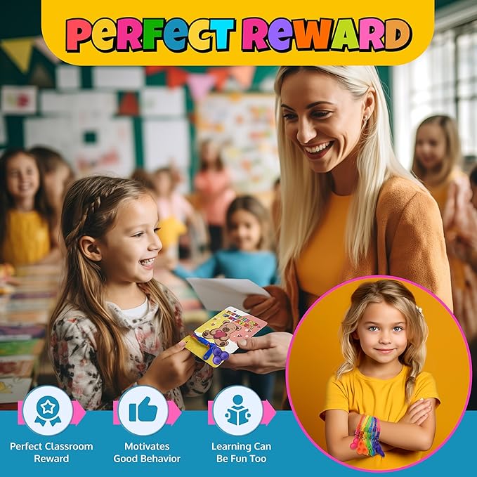 - Bright and Engaging Designs: Imagine the excitement as kids exchange these colorful valentine card packs for kids, paired with fun, wearable bracelets toys. It makes them the perfect Valentine's Day stocking stuffers for kids class.