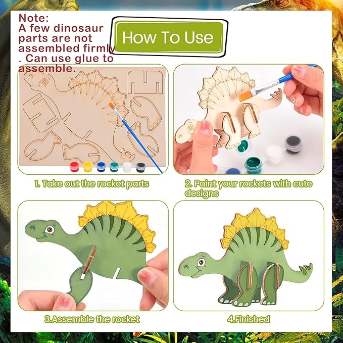 - Educational Learning Toys:The Diy crafts can help children to recognize color and enjoy fun for learning color combinations. These craft kits are also can help children increase imagination, creatively skills by painting dinosaurs. Help develop fine motor skills, improves children’s concentration and hand-eye coordination.