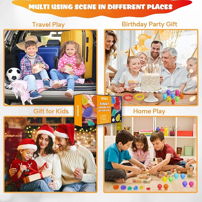 - CALM DOWN TOOLS & GREAT GIFTS -Textured sensory fidget teether toys are essential for anyone looking for a fun and engaging experience. These fidget bracelets, particularly beneficial for children with autism, offer a calming effect that encourages concentration and relaxation. The perfect fidget toy set makes an excellent gift for children! It can serve as treasure box toys, prizes for carnival games, birthday presents, and classroom rewards in schools.