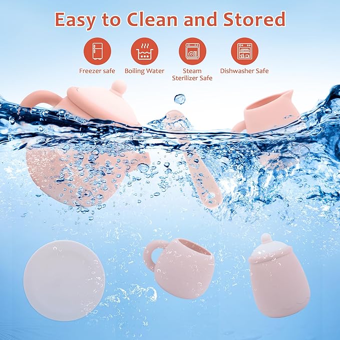 - 【Kids' Fun and Learning】Not only does our cute tea set provide endless entertainment, but it also encourages children to develop important skills such as hand-eye coordination, fine motor skills, and social interaction. So why wait? Transform your next family gathering into a magical tea party with our silicone kids teapot set