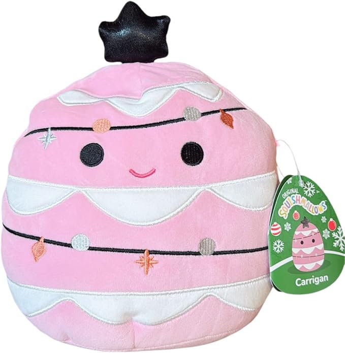 Squishmallows Officially Licensed Kellytoy B Christmas 2024 Squad Plush -Squishy Stuffed Animal Toy - Gift for Kids, Girls & Boys 8 Inch (Carrigan Pink Tree)