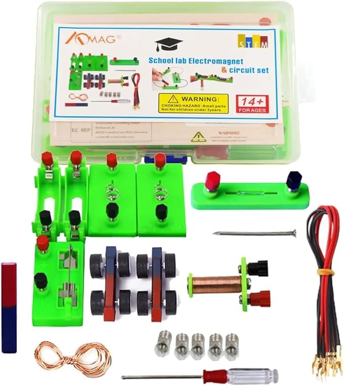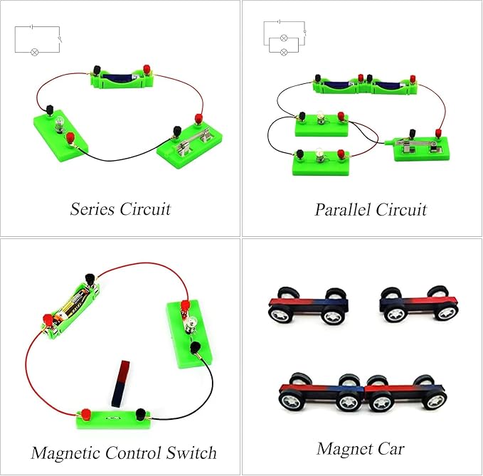 • 【MAGNETISM EXPERIMENT】- Electricity and magnetism kit for students can set up many projects: Magnet Car, Homemade Electromagnet, Simple Circuit, Series Circuit, Parallel Circuit, Magnetic Control Switch and other interesting projects. Physics lab kit with a list of experiments, help children to complete the experiment better.