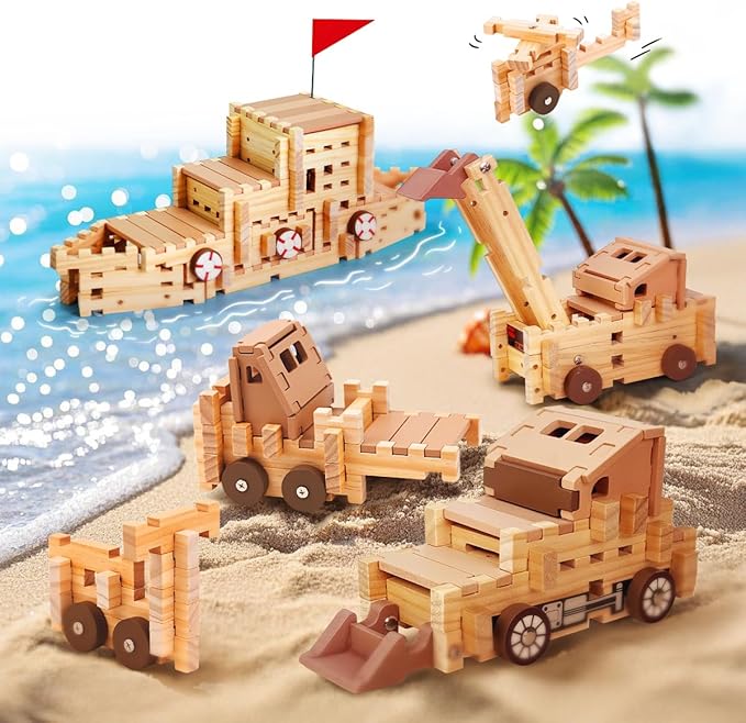 - Various Shapes, Endless Creativity: The Jovi-mindly wooden blocks contains 101 pieces, allowing children to create 46+ different creative designs. These wooden train set include transportation vehicles like motorcycles, bicycles, buses, and helicopters, as well as construction vehicles such as trucks, excavators, and bulldozers. Children can also build space vehicles like lunar exploration rovers and robots. The wooden toys set comes with detailed instructions, so children can follow the guide or use their imagination to build their own "Dream Car."