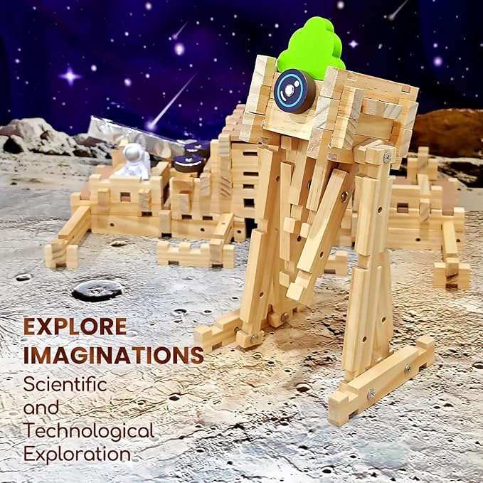 - Various Shapes, Endless Creativity: The Jovi-mindly wooden blocks contains 101 pieces, allowing children to create 46+ different creative designs. These wooden train set include transportation vehicles like motorcycles, bicycles, buses, and helicopters, as well as construction vehicles such as trucks, excavators, and bulldozers. Children can also build space vehicles like lunar exploration rovers and robots. The wooden toys set comes with detailed instructions, so children can follow the guide or use their imagination to build their own "Dream Car."