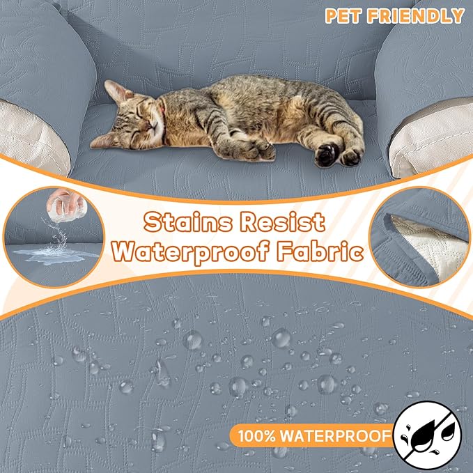 XINEAGE 100% Waterproof Recliner Chair Covers with Elastic Straps, Nonslip Reclining Couch Covers Washable Recliner Couch Cover with Pockets Furniture Protector for Pets Dogs (Greyish Blue, 23")