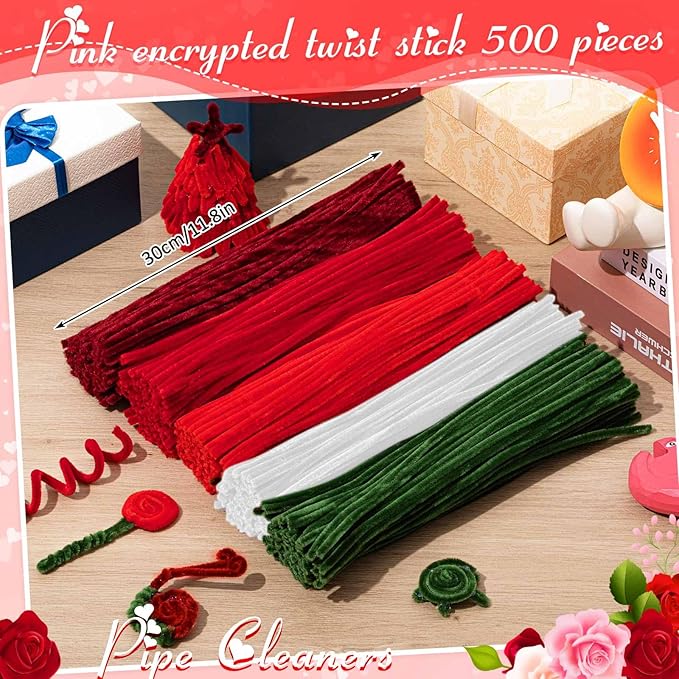Peryiter 500 Pieces Pipe Cleaners Chenille Stems 12 Inch Craft Supplies Bulk for DIY Art and Craft Projects Creative Gift Wrapping Party Decorations(Rose Color,12 Inch)