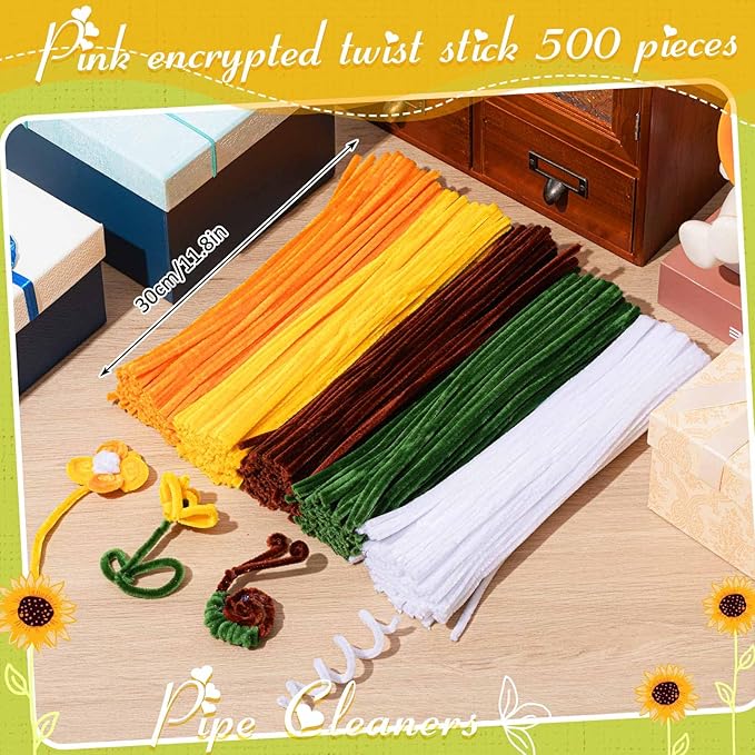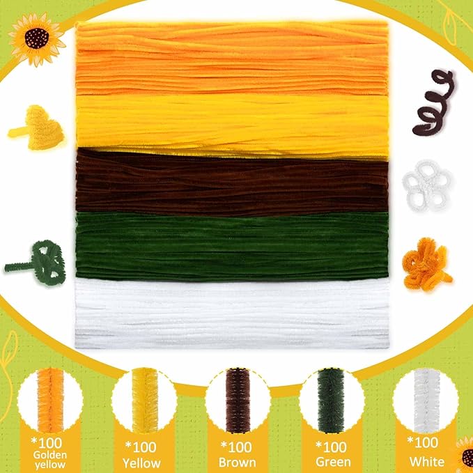 Peryiter 500 Pieces Pipe Cleaners Chenille Stems 12 Inch Craft Supplies Bulk for DIY Art and Craft Projects Creative Gift Wrapping Party Decorations(Sunflower Color,12 Inch)