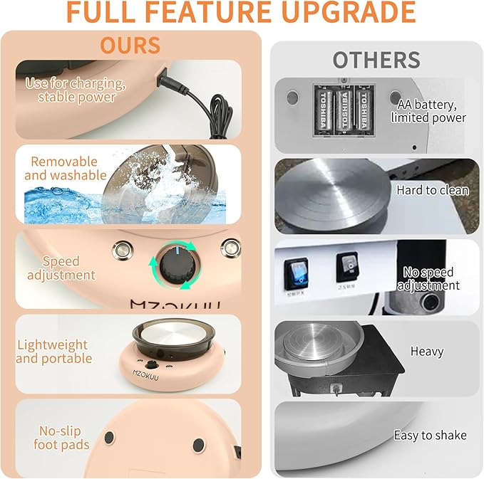 - Perfect Gift for Young Creators: Compact and portable, this pottery wheel is ideal for home or studio use. Whether it’s for a birthday, or christmas, it’s the perfect gift to inspire creativity and hands-on learning in kids.
