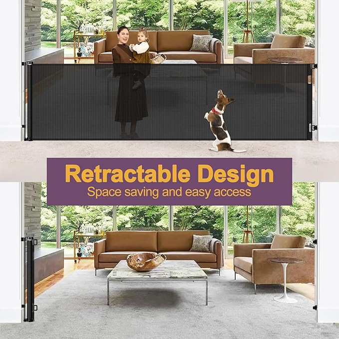 - Durable & Scratch-Resistant Mesh: Our extra tall retractable dog gate is made of upgraded mesh lining that is durable, soft and scratch resistant. It can withstand the scratching of your dog's paws.