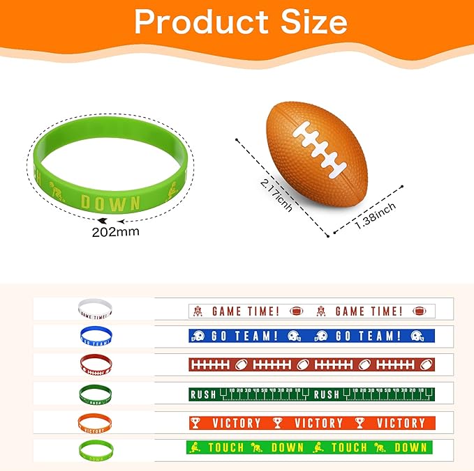 - Package Content: you will receive a total of 48 football party favors, including 24 pieces mini football stress ball and 24 pieces football silicone bracelets, sufficient quantity and complete combination that can satisfy your needs of festival or daily party