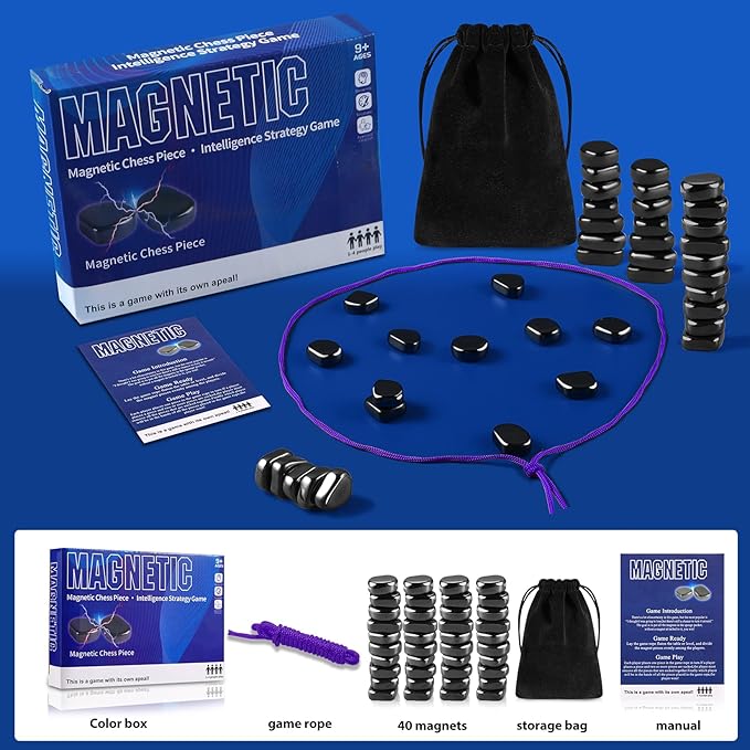 - 【Magnetic Chess Game Set】40 x magnetic stones, 1 x game rope, 1 x storage bag, 1 x game instruction manual