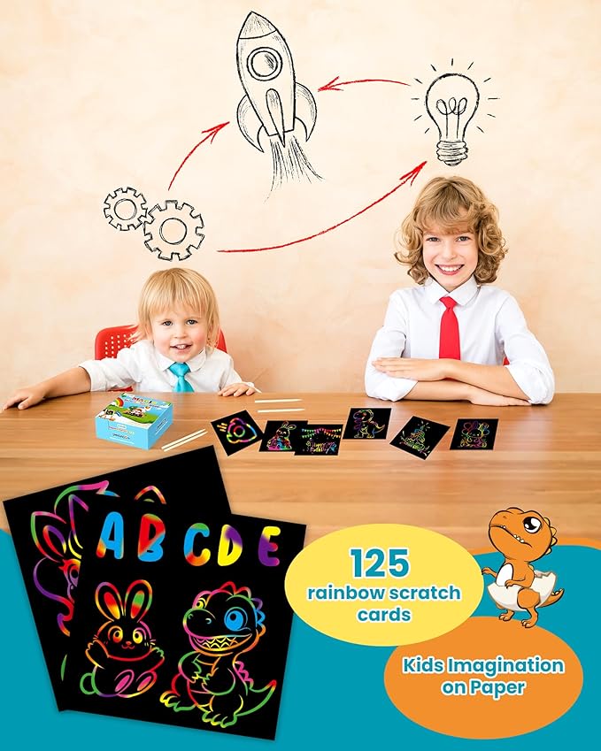 • Variety Pack: This set includes 125 vibrant scratch paper note cards and 5 pcs rounded edges wooden styluses tools for scratching. The materials are non-toxic and safe for kids and the colors vibrant and long lasting. Perfect for arts, crafts, DIY projects, party favors, kids games and more. So easy to work with this mini scratch paper cards!