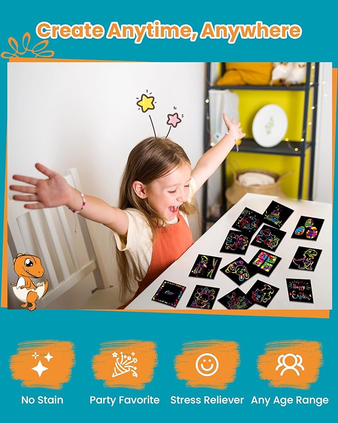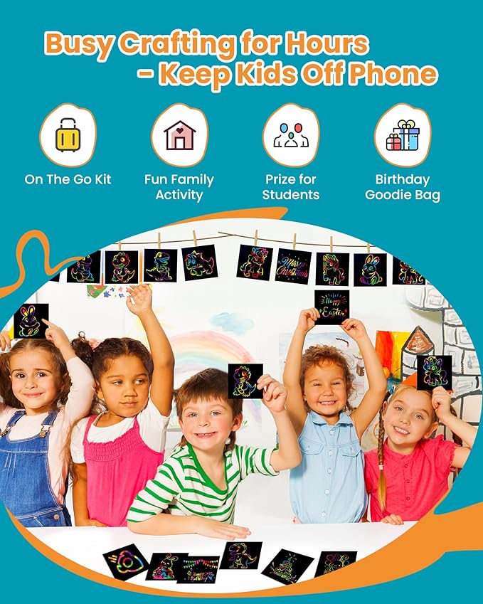 • Engaging Activity: Rainbow Mini Scratch Art Notes provide an entertaining and creative outlet for kids to unleash their artistic talents. Suitable for group activities and also individual play. Any age range. Little ones can also easily handle them and create on the scratch paper.