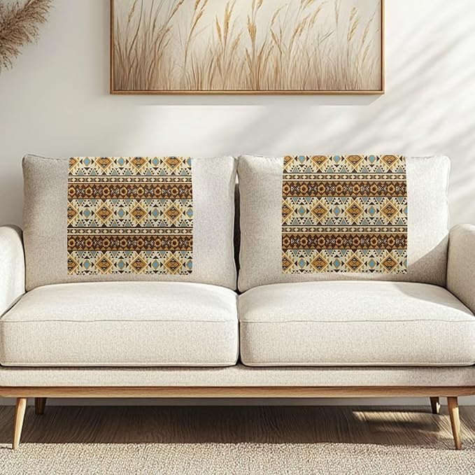 Aztec Recliner Headrest Protector Pet Scratch Resistant Chair Headrest Cover Anti-Fade Sofa Headrest Slipcovers for Home Couch Loveseats Decoration 2 Pack