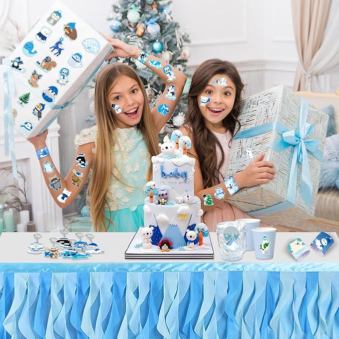 - Winter Arctic Polar Animals Party Favors: Arctic animal party supplies include 12 sheet arctic animal temporary tattoos (72 Patterns), 50 pcs arctic animal stickers, 12 pcs arctic animal slap bracelets, 12 pcs arctic animal badges, 12 pcs arctic animal acrylic keychains, Enough quantity to meet your arctic polar animal party needs