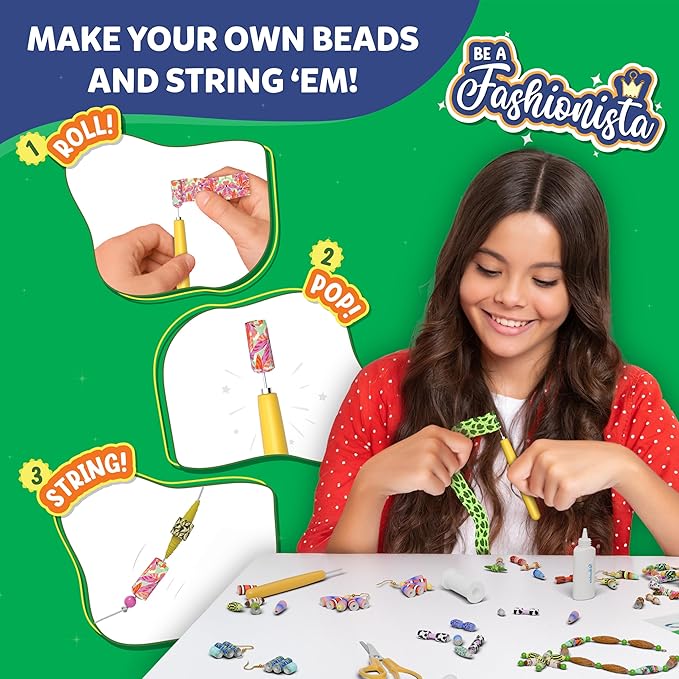 - MAKE YOUR OWN BEADS!: Create stylish earrings, bracelets, and necklaces with this craft kit! Use the roll-up tolls to create over 250 paper beads of different shapes and sizes with the coolest jungle prints! Add cute charms and bauble beads to your DIY jewelry for extra dazzle! Once done, wear your creations with your favorite outfit, or gift them to your besties!