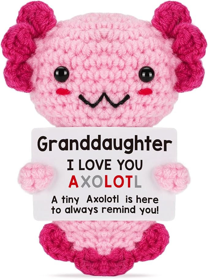 - Gifts for Great Granddaughter: Accompanied by a heartfelt message, this crochet axolotl provides emotional support and encouragement, reminding your granddaughter that she’s always loved and supported by her grandparents.