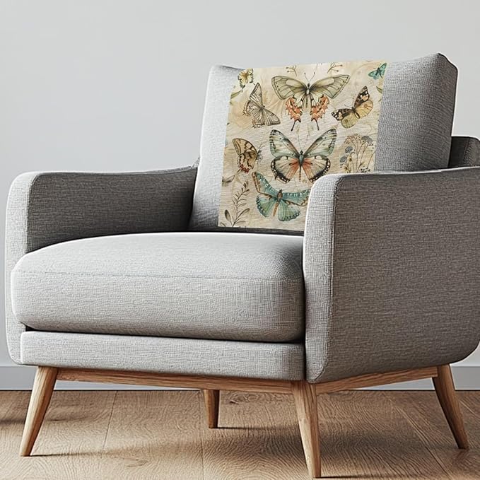 Retro Butterfly Recliner Headrest Cover Fabric Sofa Headrest Slipcovers Pet Scratch Resistant Couch Headrest Covers Furniture Protector for Home Couch Loveseats Decoration Set of 2