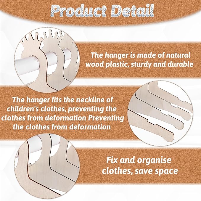 - 【Cute and Stylish】The adorable and timeless design of these wooden hangers adds a touch of charm to your child's closet, enhancing the overall look and feel.