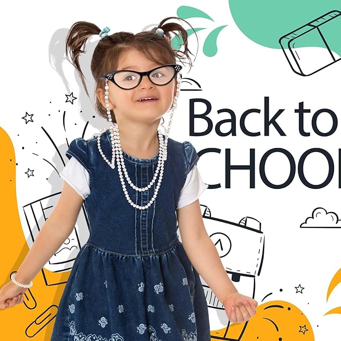 - Size Information: Cat Eye Rhinestone lady glasses width is 5.9inch, length is 6.1inch, the length of eyeglasses chain strap is 25.59inch, one size fit all age. The length of pearl necklace is 59inch, and it can be adjusted to the shape you want, not only for holiday party role-playing, but also fit for daily wear.