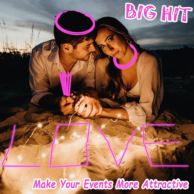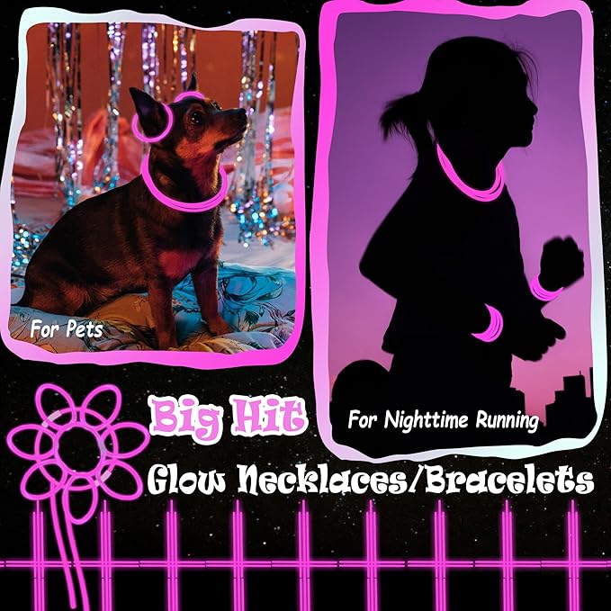 - Glow Sticks Light up Your Night - Our neon glow stickers set come with 100 packs of glow stickers and connectors for making different shapes, such as bracelets, necklaces, headbands and belts. Bend and shake to activate these glow sticks, which are a huge hit at the dark night party, easy to assemble and remained colorful for quite a long time