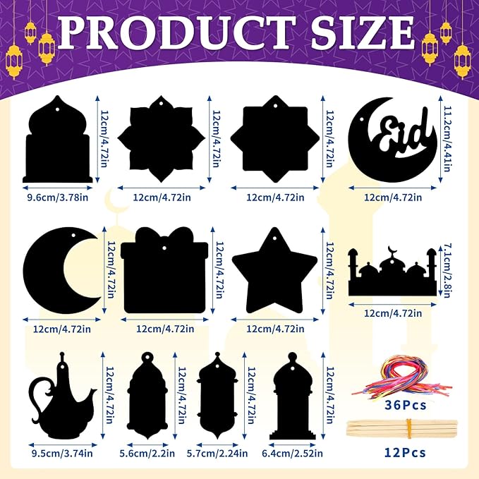 - Packaging Includes:You will receive 36 pieces Ramadan scratch paper cards for kids (12 styles, 3 sheets for each style), 12 wooden sticks and 36 ribbons, which are sufficient in quantity and rich in styles to meet your various DIY and decoration needs. Ramadan crafts for kids are ideal for children to enjoy a happy DIY time
