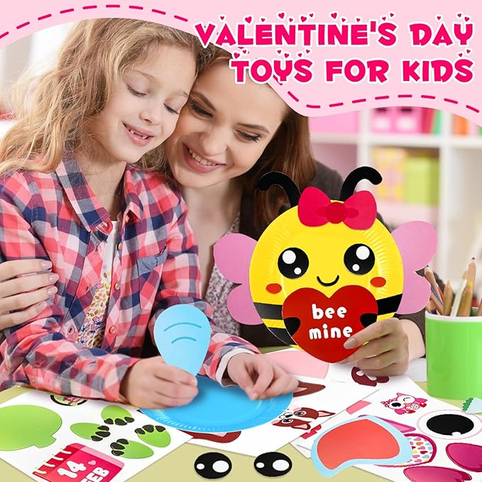 • 【Perfect Valentines Crafts for Kids】The Valentines for kids crafts kit is suitable for kids age 1+ who loves DIY craft. Children can transform the simple paper plates into 3D adorable lovely animals. It is also suitable for Valentine day party favors games, preschool classroom school learning supplies, various handmade creative parties and children's at home activities