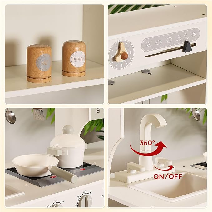 SainSmart Jr. Kitchen for Kids, Wooden Play Kitchen with Toy Storage System, Toy Kitchen Set with Plenty of Play Features, Kids Play Kitchen Designed, Gift for Ages (Cream White)
