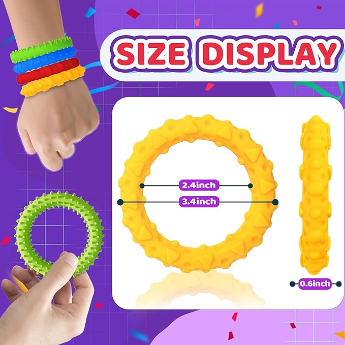 - 【Suitable for Any Occasion】 Boys and girls can easily wear the stretchy sensory bracelets on their wrists and then take them to school, the office, to parties, on trips, in clasroom or outside to play with friends. The unique texture and vibrant colors provide hours of endless entertainment for kids and are helpful for people with arm muscle training needs