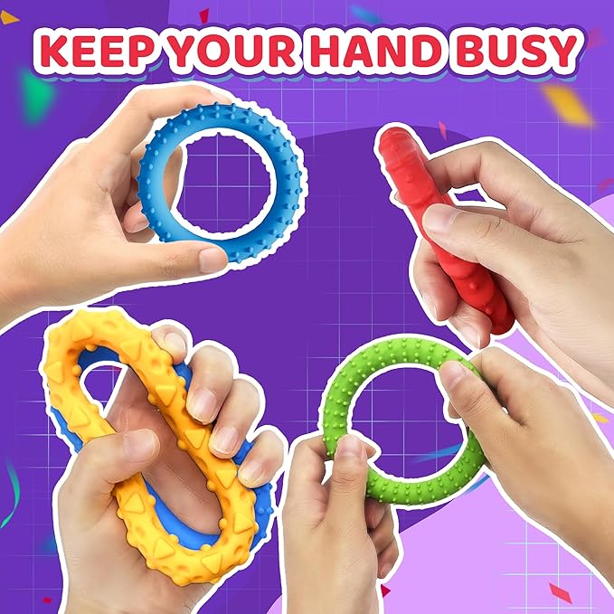 - 【Safe and Durable】The fidget bracelets for sensory kids adults are made of food grade silicone, soft, durable, long-lasting and easy to clean, Rounded edges for boys and girls with autism, ADHD, ASD.These Quiet sensory fidget Sets also fit easily into backpacks or pockets, and can be taken anywhere you want to use them